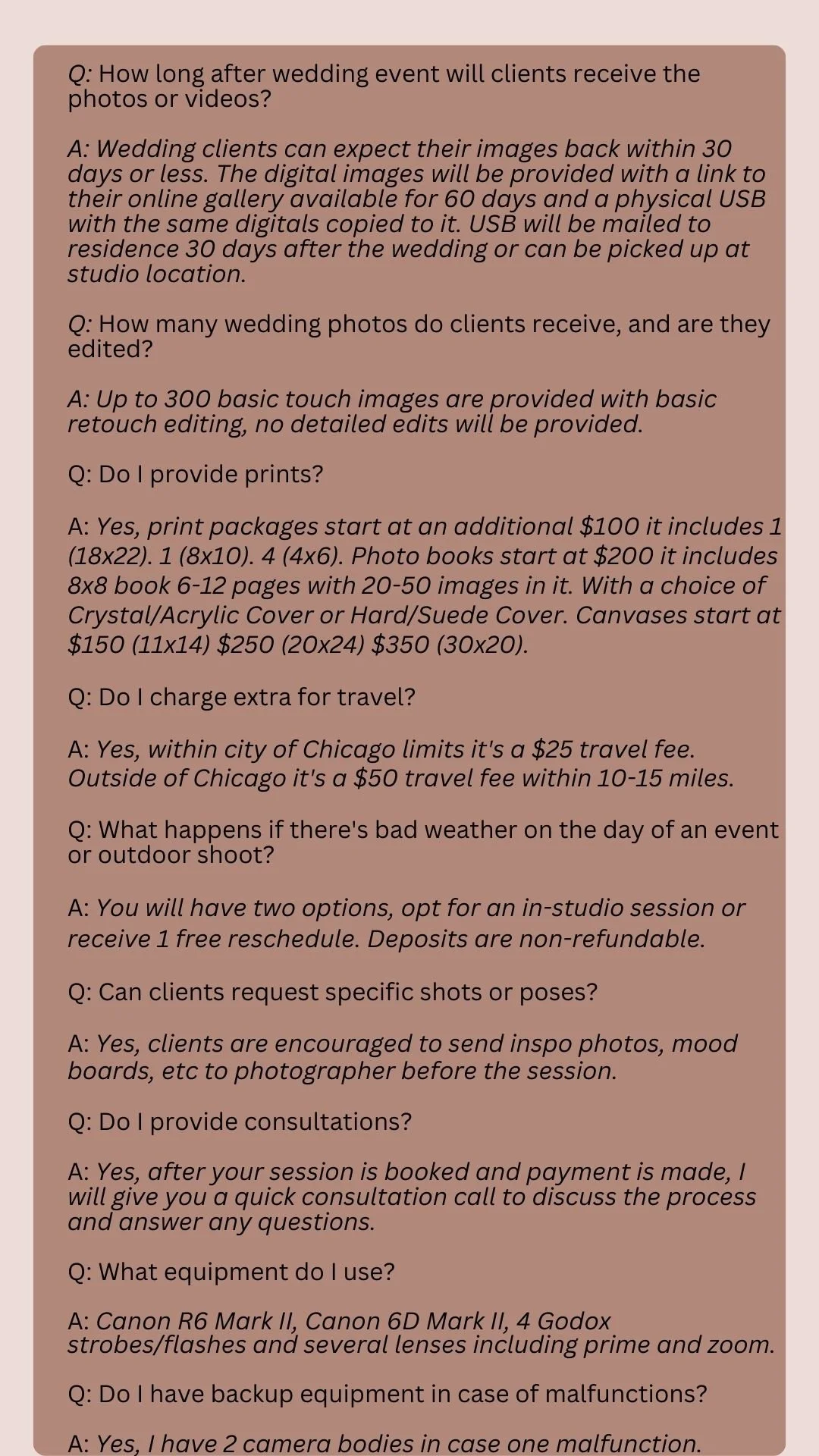 Prices are located above under Services! Prices are located above under Services! Prices are located above under Services!